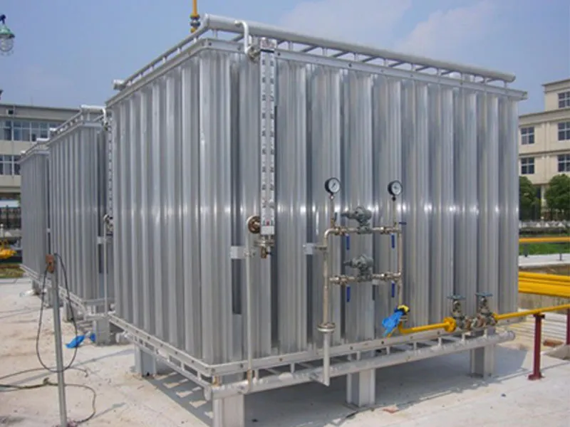 Теплообменник в основном состоит из высокоэффективных низкотемпературных продольных оребренных трубных пучков из алюминиевого сплава. Каждая оребренная труба разделена на две секции: секцию испарения и секцию перегрева. Секция испарения обеспечивает достаточную площадь теплопередачи для преобразования жидкой среды в газообразное состояние; секция перегрева дополнительно нагревает газ, повышая температуру выходного газа для достижения стабильной производительности распределения.